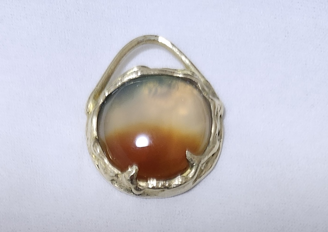 バイカラーアゲートと真鍮のチャーム。買った時点で雪春のゼファーとヒオウをイメージしていたので、たぶん買ったのは去年の7月以降なんだけど、はっきりしない……。