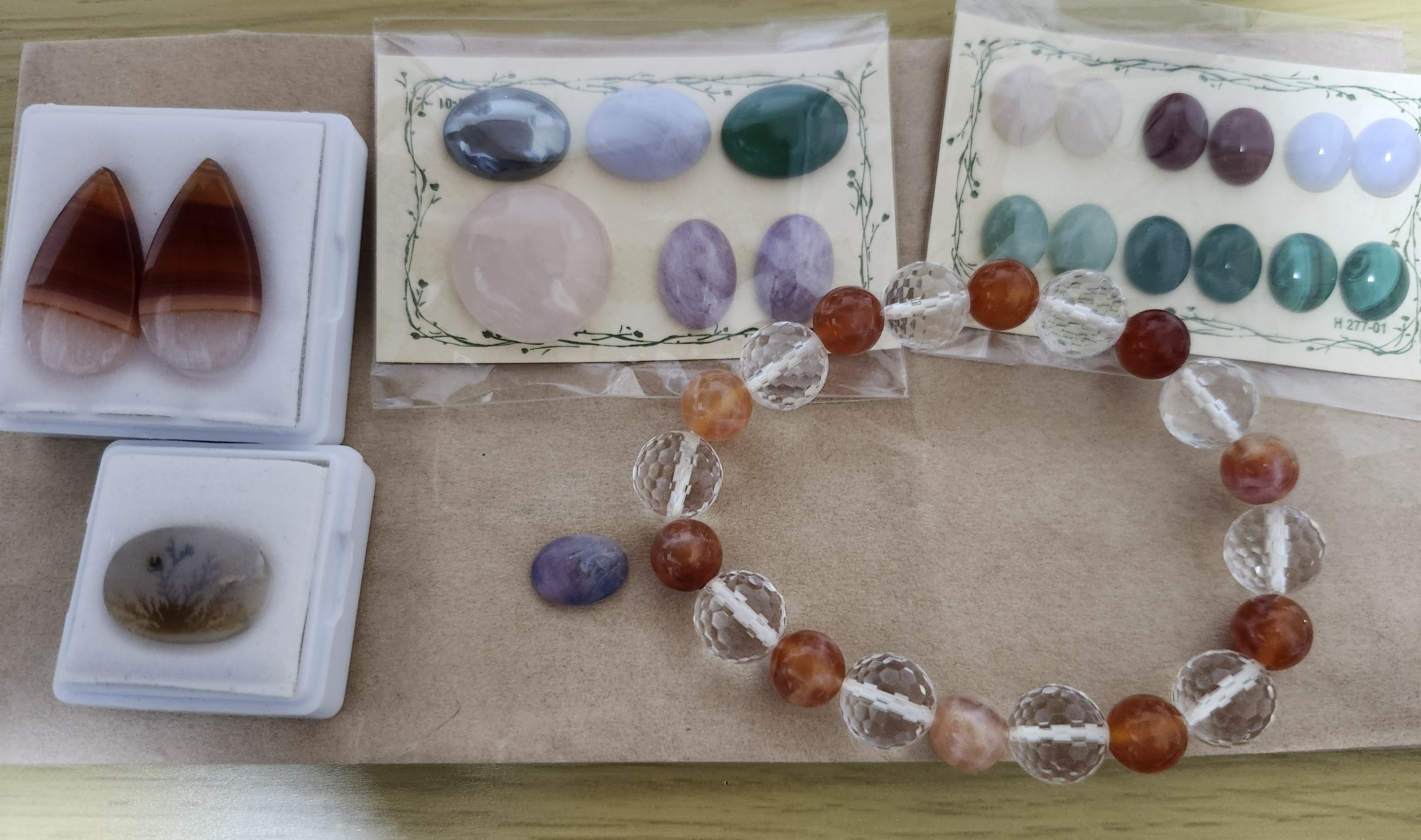 いうて本当に高い石は買っていません。上のカボション詰め合わせは、アクセサリ教室で練習に割っても構わないお値段です。(だからって意図的には割りません! だいじにします!)