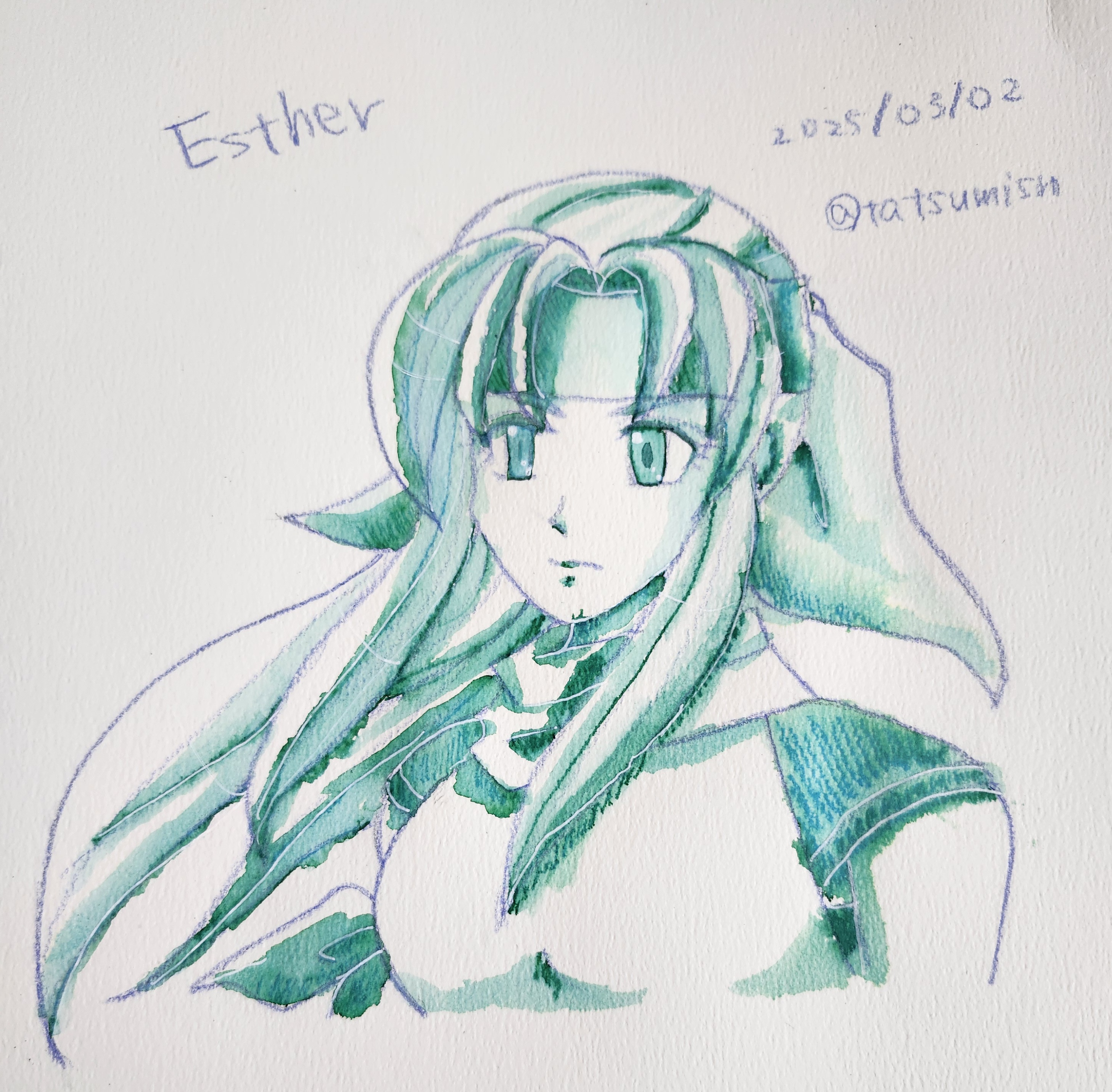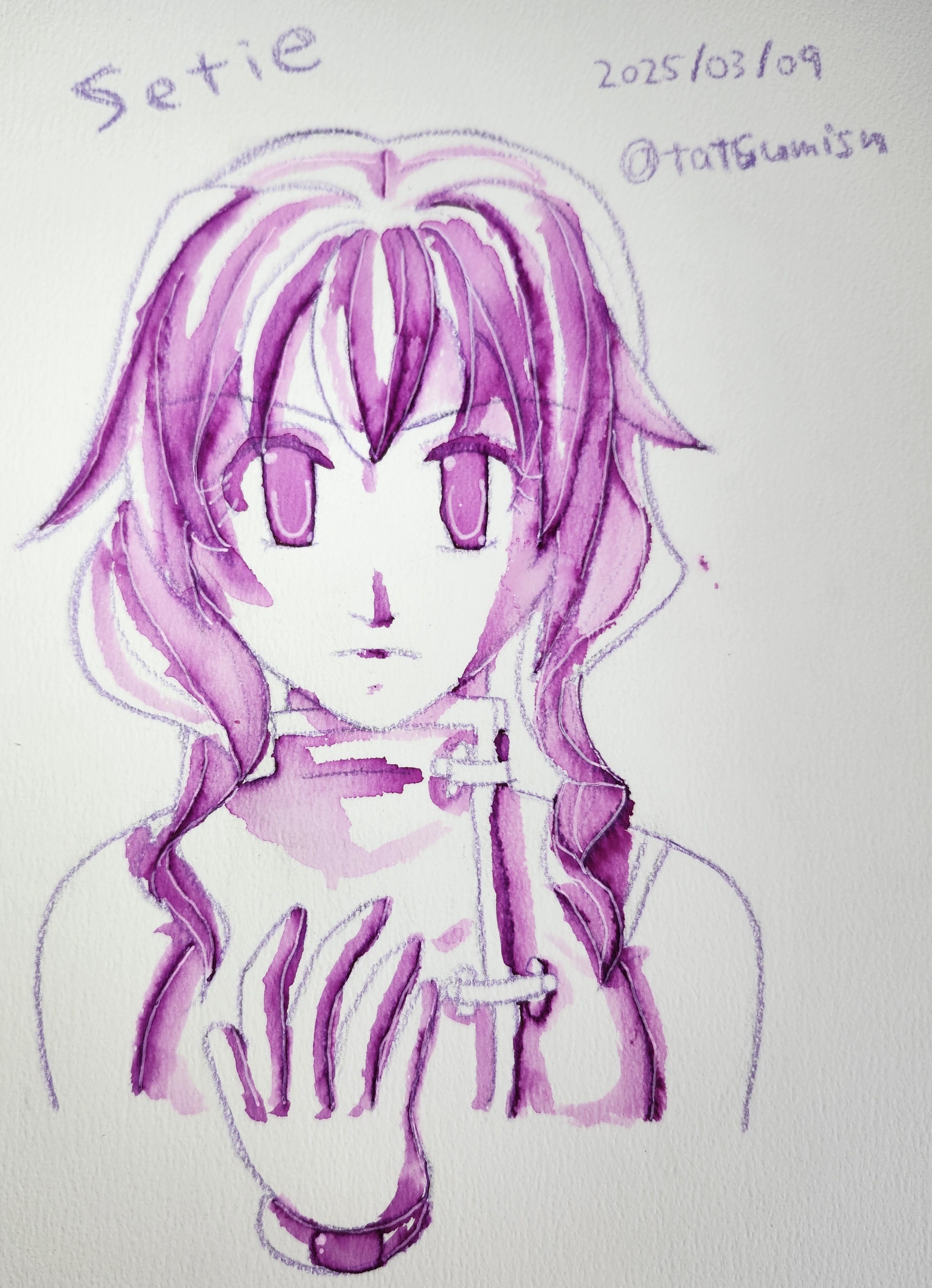 『この大地の上で』ヒロインのソフィアで、染料インクの濃淡だけで表現する練習。